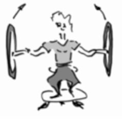 3. Lilly hält in jeder Hand ein rotierendes Rad. Die Radachsen sind horizontal, und parallel zueinander. Der Drehstuhl dreht sich zunächst noch nicht. Lilly kippt nun beide Räder so, dass die Radachsen nach oben zeigen.