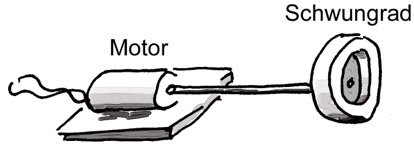 6.Der Motor läuft an. Von wo nach wo fließt Drehimpuls?