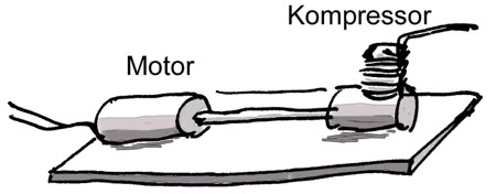 Oben: Aus der Erde über den Motor und die Welle ins Schwungrad Unten: Im „Kreis“ herum, nämlich über die Welle vom Motor zum Kompressor, und über das Fundament zurück zum Motor.
