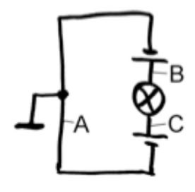 Wie ist das elektrische Potenzial an den Stellen A, B und C?