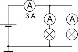 7. Die Lampen sind gleich gebaut. Was zeigen die beiden rechten Amperemeter an?