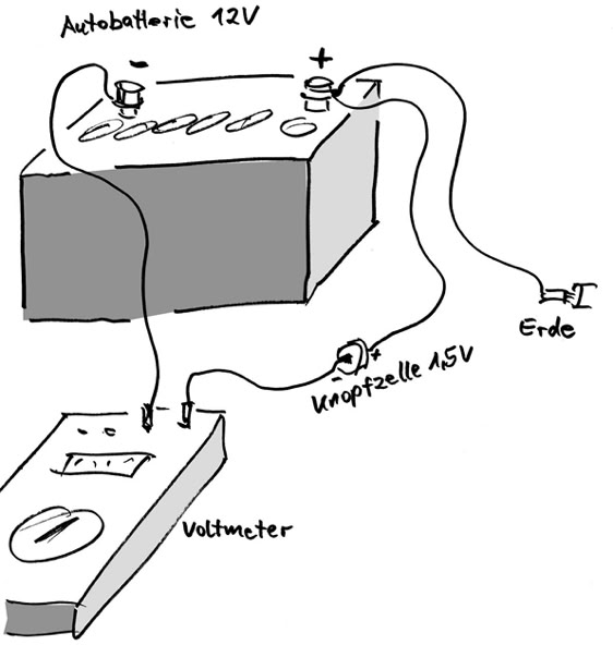 12. Was zeigt das Voltmeter an?