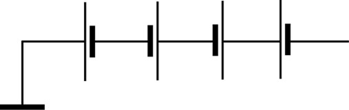 2. Vier 1,5-Volt-Monozellen. Welches sind die Potenziale der Leitungsabschnitte?