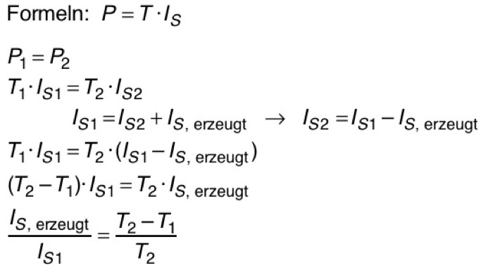 Der Anteil der erzeugten Entropie am Gesamtstrom IS1 hängt nur von den beiden Temperaturen ab, nicht aber von der Art des Wärmeleiters.