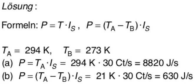 3. Durch einen Wärmemotor fließt ein Entropiestrom von 100 Ct/s. Die Temperatur am Eingang ist 150 ˚C, am Ausgang 50 ˚C. Wie viel Energie gibt der Motor pro Sekunde mit dem Energieträger Drehimpuls ab?