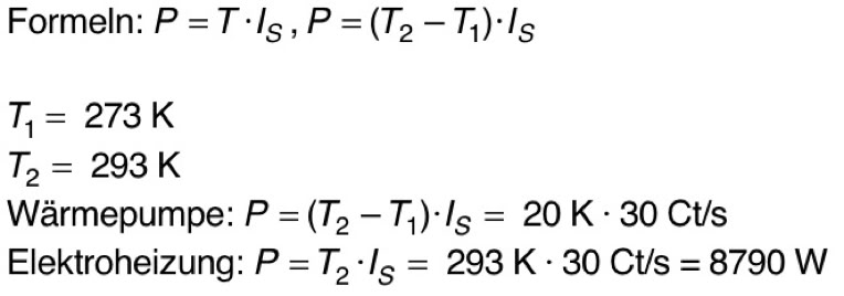 6. Ein Haus wird mit einer Wärmepumpe geheizt. Die Außentemperatur beträgt 0 °C, die Temperatur im Haus 21 °C. Die Wärmepumpe fördert 30 Ct/s.