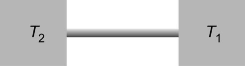 Durch einen wärmeleitenden Stab fließt ein zeitlich konstanter Entropiestrom von einem Körper 2 mit der hohen Temperatur T2 zu einem Körper 1 mit der niedrigen Temperatur T1. Die Körper sind so groß, dass sich ihre Temperaturen dabei nicht merklich ändern. Stell die Energie- und die Entropiebilanz auf.
