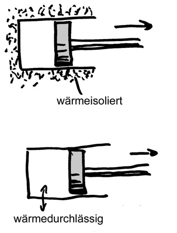 1. (a) Der Kolben in der oberen Abbildung wird nach rechts bewegt. Welche der Größen Volumen, Druck, Entropie und Temperatur ändern sich? Zu- oder Abnahme?