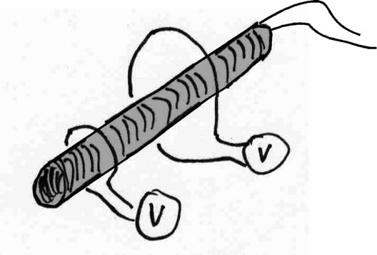 9. Die magnetische Flussdichte in einer langen zylindrischen Spule ändert sich. Vergleiche die Spannungen, die in den beiden Leiterschleifen induziert werden. Begründe.