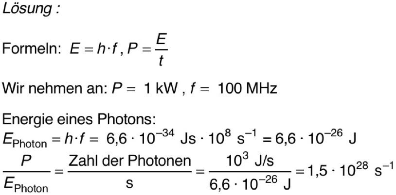 2. Schätze die Zahl der von einem Radiosender pro Sekunde emittierten Photonen ab.