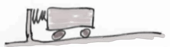 7. Die Feder entspannt sich und setzt den Wagen in Bewegung. Von wo nach wo geht der Impuls? Woran erkennt man, wie er fließt?
