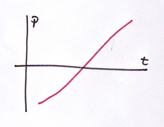 6. Ein Zug, der zunächst in die negative x-Richtung fährt, bremst und beginnt dann sofort, in die positive x-Richtung zu beschleunigen. Skizziere qualitativ in einem Diagramm den Impuls über der Zeit.