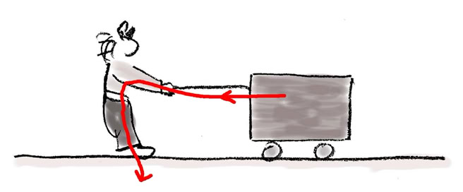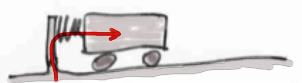 4. Der Wagen wird nach links gezogen. Er rollt reibungsfrei. Skizziere den Weg des Impulses.